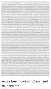 Up to 24 cash back The entire bee movie script pdf full text pdf According to all known laws of aviation there is no way a bee should be able to fly. The Entire Bee Movie Script Copy Paste. The bee of course flies anyway because bees dont care what humans think is impossible.